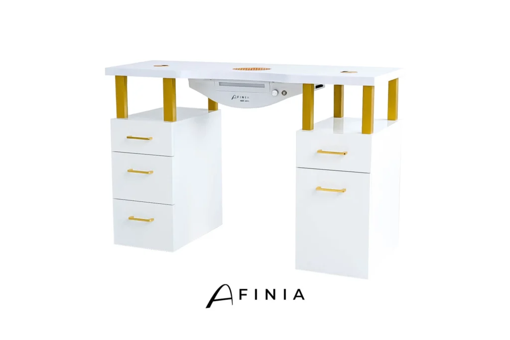 Vi har egen produksjonshall i Polen. Takket være dette har vi innflytelse på produksjonen og skapelsen av våre møbler i alle ledd. Manikyrbord krever bruk av kjemikaliebestandige materialer, noe som alltid er en prioritet ved godkjenning av endelig design før de settes i produksjon. Afinia-produkter av høy klasse finnes i tusenvis av manikyrsalonger i Polen og i utlandet. Hver dag på Afinias sosiale mediekanaler kommer det utallige positive meninger fra flere og flere fornøyde kunder.